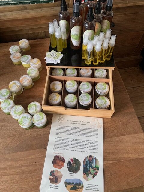 Mes produits sont fabriqués dans mon atelier à Latresne à partir de plantes cultivées et cueillies dans la nature, séchées par mes soins, et transformées ensuite artisanalement. Je travaille avec des huiles végétales de première pression à froid, du vinaigre de cidre, de la cire d’abeille, de l’alcool pur, de la propolis et des huiles essentielles.
